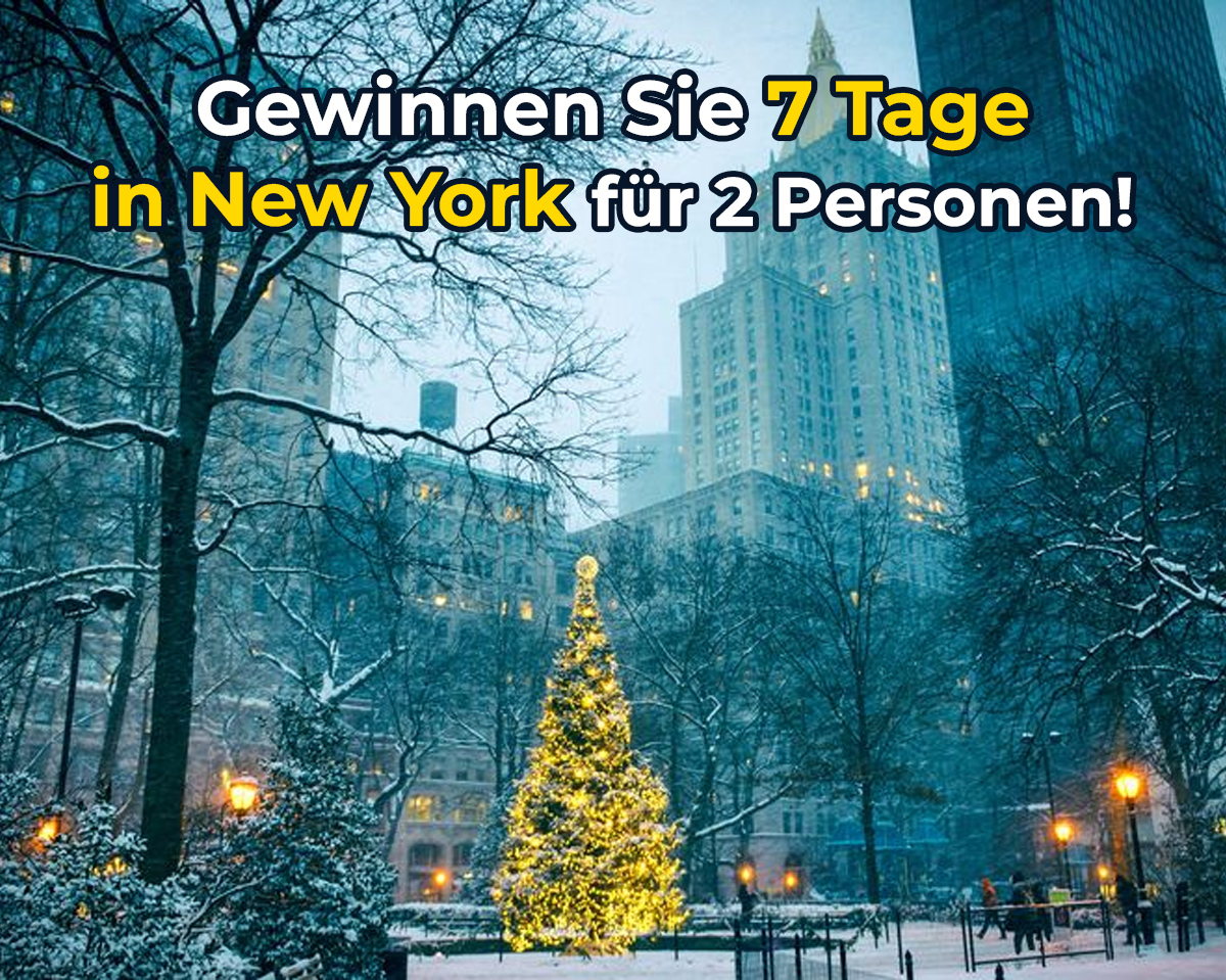 Sie haben außerdem die Chance, mit Ihrer Bestellung eine unvergessliche 7-tägige Reise für zwei Personen nach New York in einem 5-Sterne-Hotel zu gewinnen!